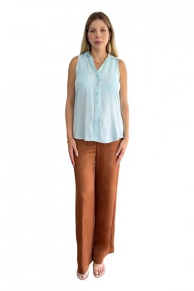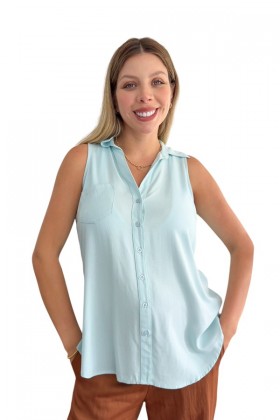 Delicada blusa maternal y Lactancia, confeccionada en tela de algodón color perla, diseñada con vuelos en su cuello mao. Botones cómodos para la lactancia materna.
