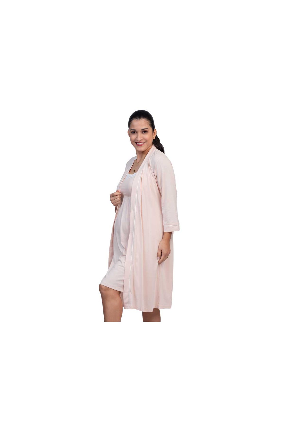 La Bata de Maternidad y Lactancia Madeleine en color rosa es la combinación perfecta de elegancia y comodidad. Confeccionada en algodón pima modal, su tejido suave y fresco envuelve la piel con una sensación delicada y confortable, ideal para la clínica o para estar en casa.
