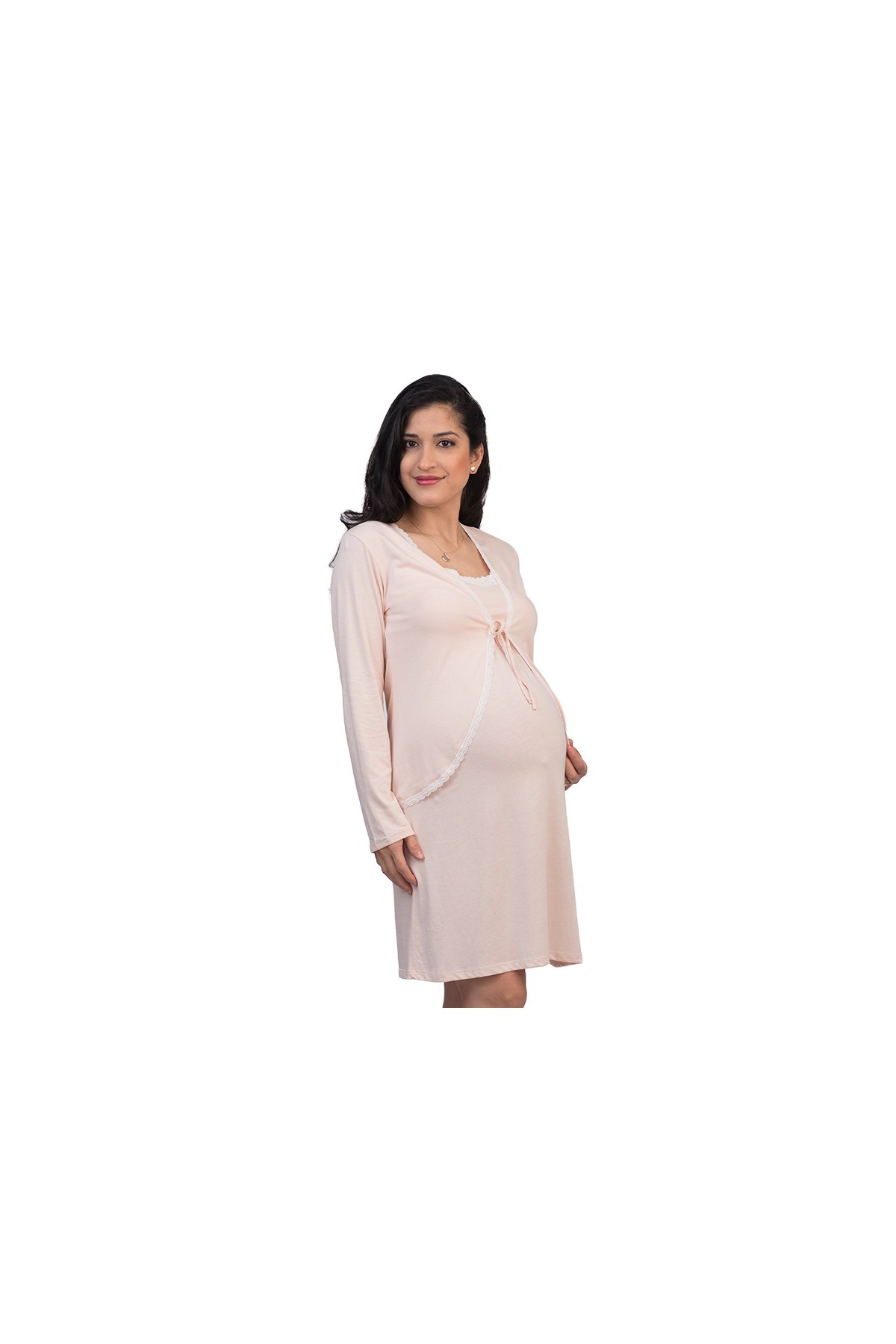 Bata levantadora Romántica bata levantadora modelo Leslie color Palo Rosa con solapa y mangas en blonda, de un estilo delicado y elegante. Blonda en mangas y basta Ideal para verte regia en la clínica o en casa para...
