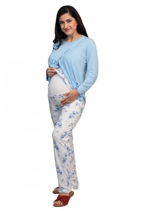 Clásico pantalón de maternidad bota ancha estilo Palazo con pancita de algodón licrado color estampado palmeras para mayor confort en el embarazo, ideales para la futura mamá que trabaja....