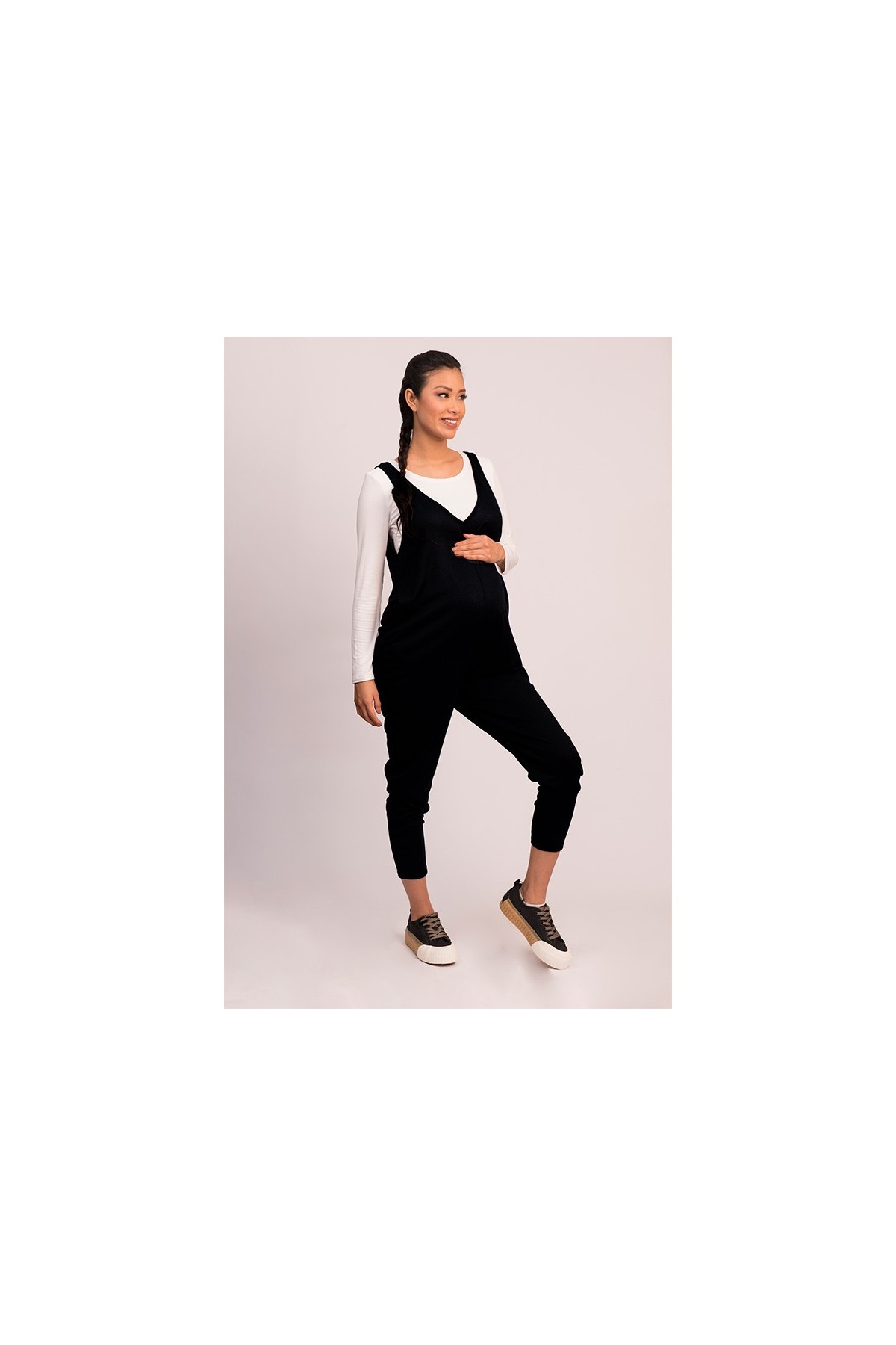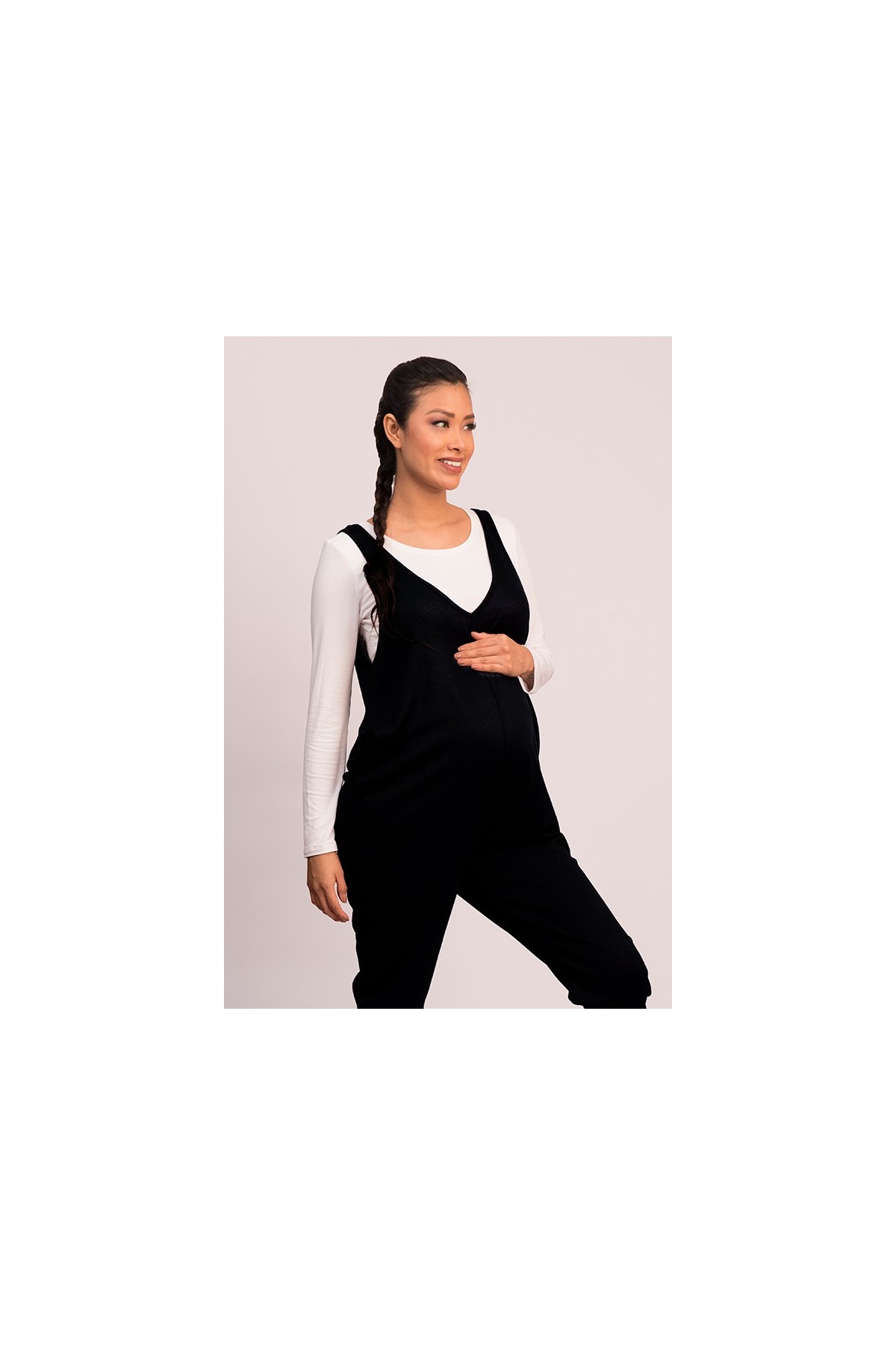 El enterizo de maternidad Roro negro es una prenda moderna, práctica y ultra cómoda, ideal para crear looks rápidos durante el embarazo. Su diseño versátil se ajusta al crecimiento de tu pancita y también es perfecto para seguir usándolo en el postparto.
