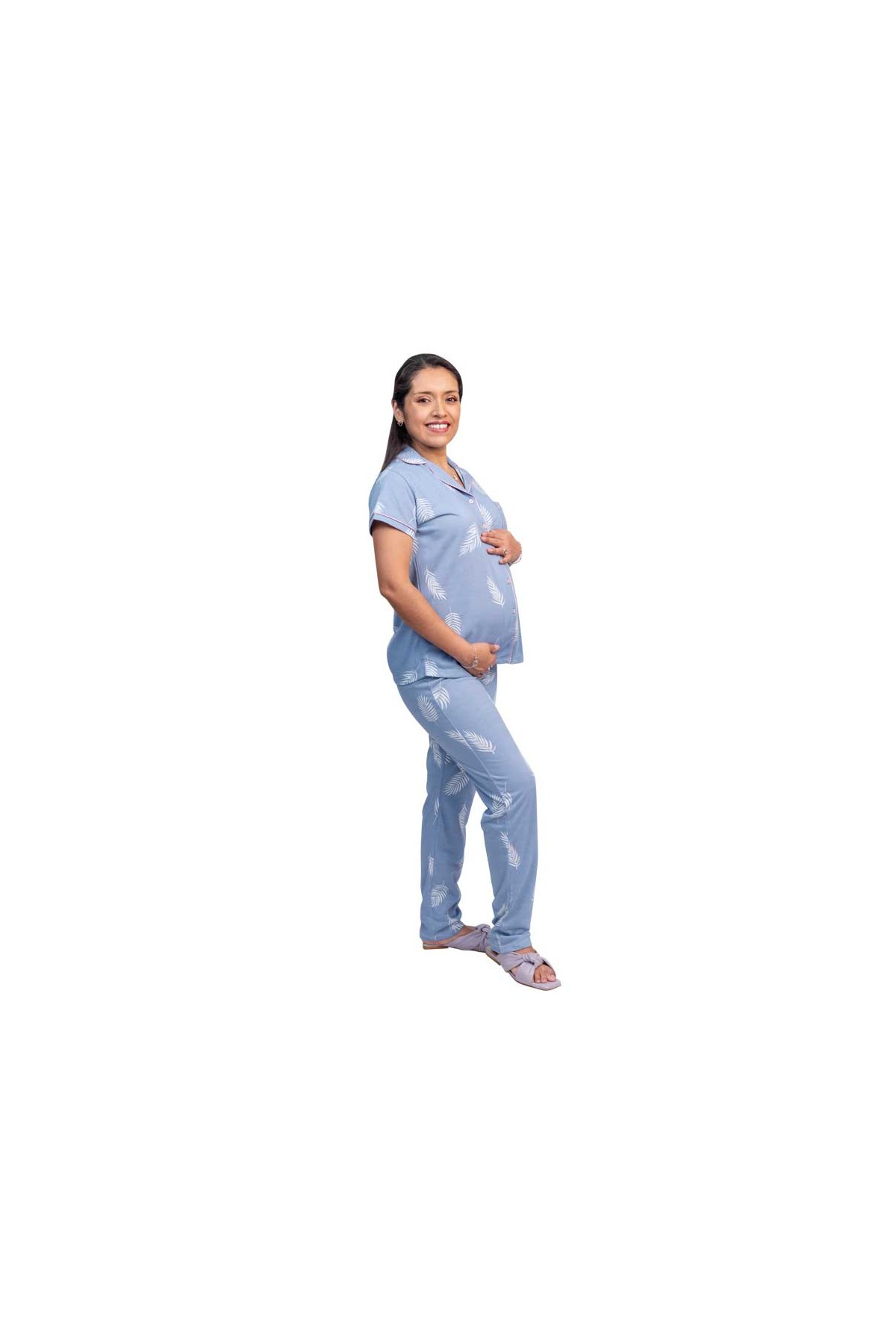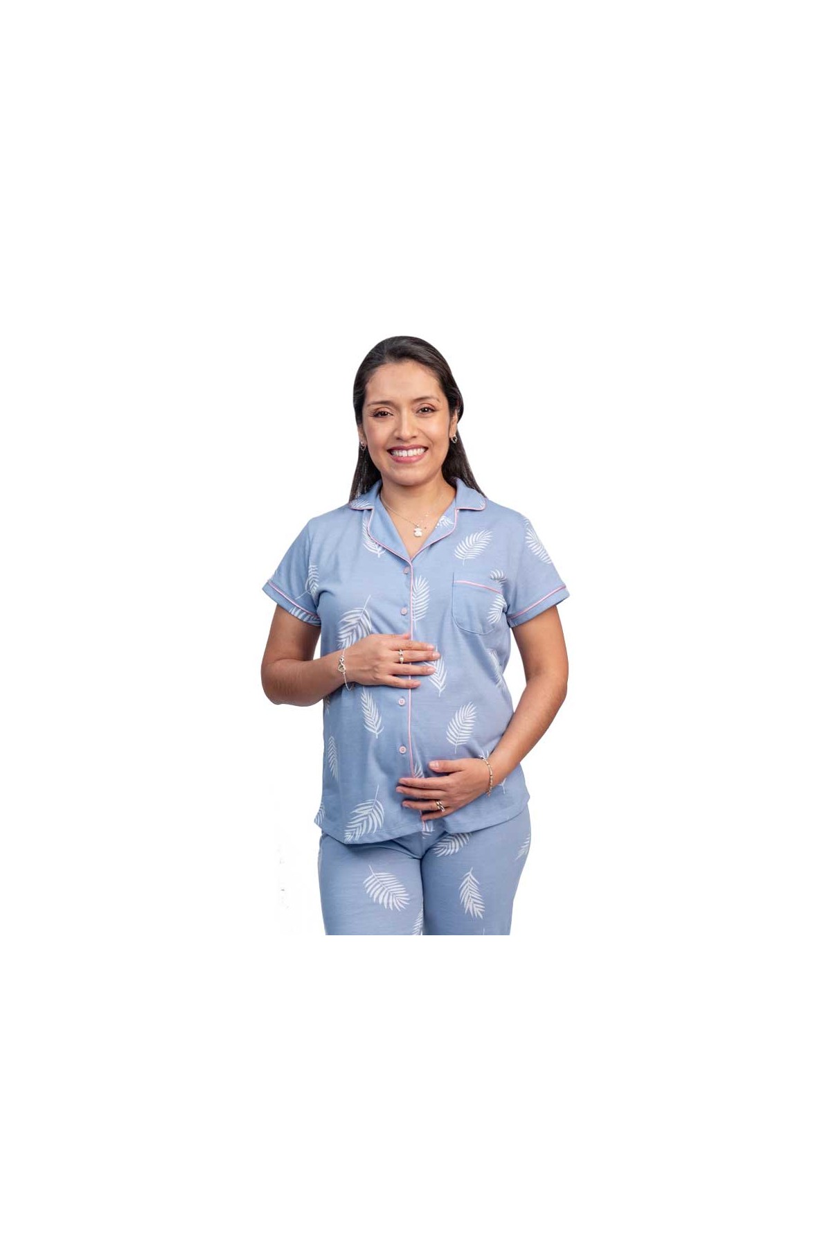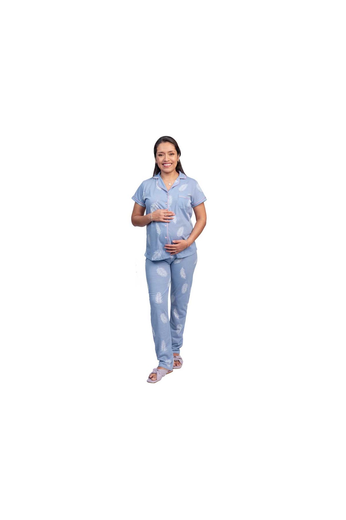 Pijama de Lactancia Paige Celeste Palmeras MC
