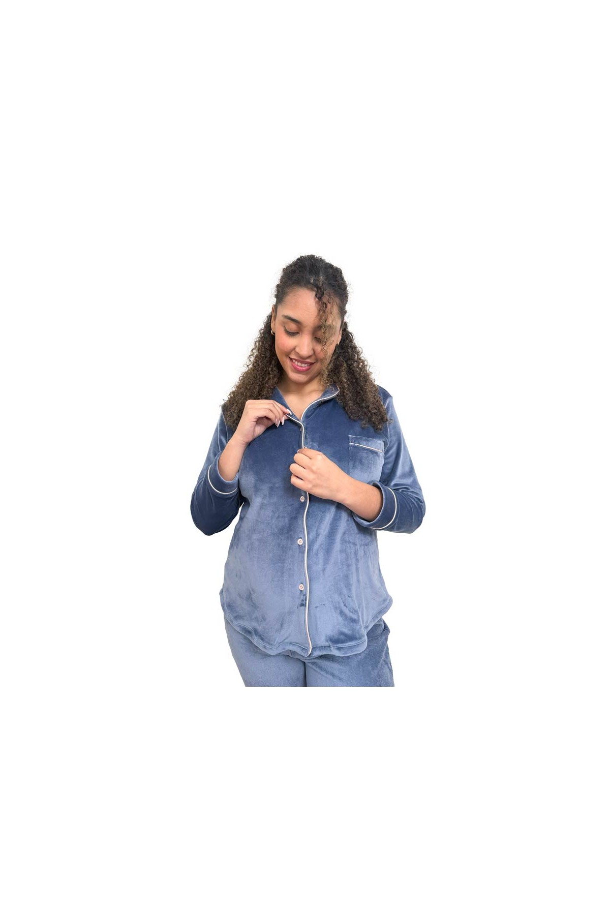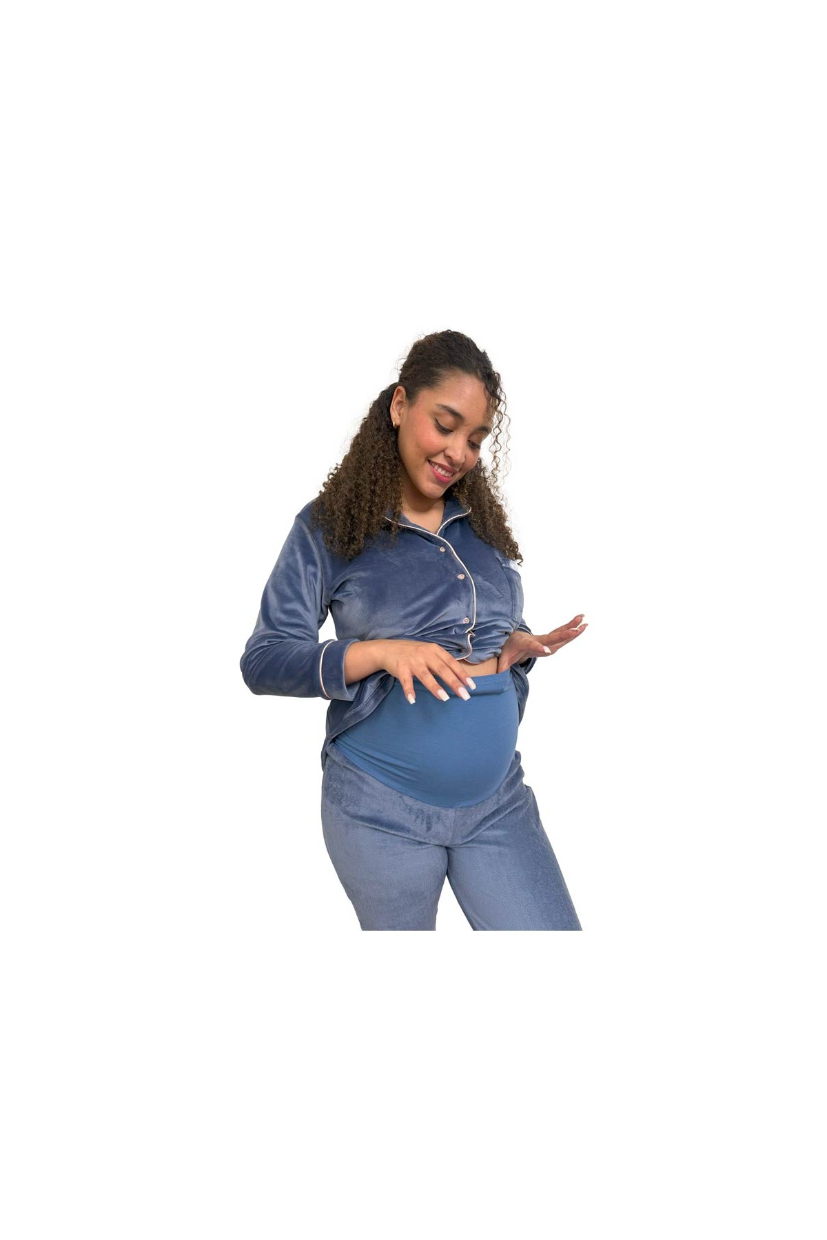 El Pijama de Maternidad Paige Azul está diseñado para ofrecerte abrigo, comodidad y funcionalidad durante el embarazo, la lactancia y el postparto. Confeccionado en plush suave y cálido, es perfecto para las noches frías o para estar en casa sintiéndote a gusto y bien vestida.