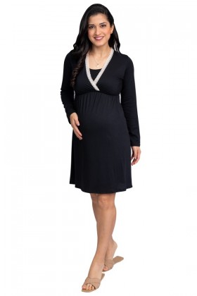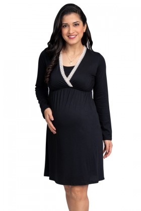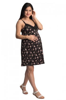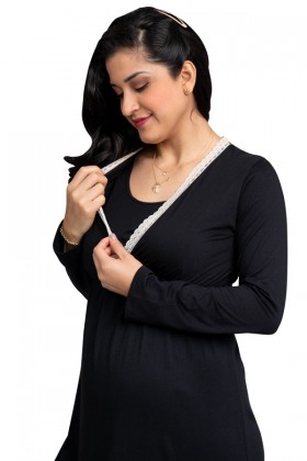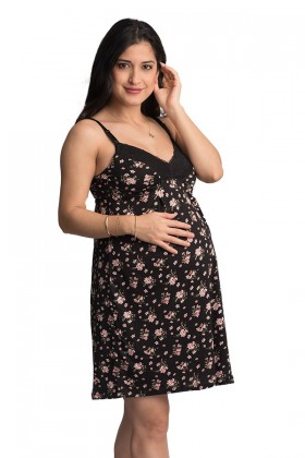 Camisón de Lactancia Katty Negro flores