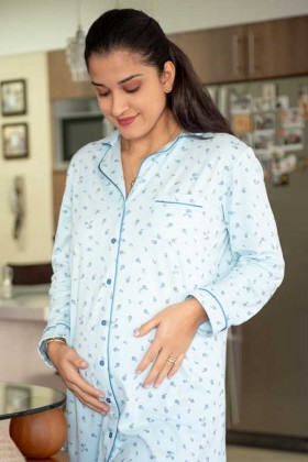 Pijama camisola de lactancia manga larga, con práctica apertura lateral para amamantar discretamente a tu bebé.