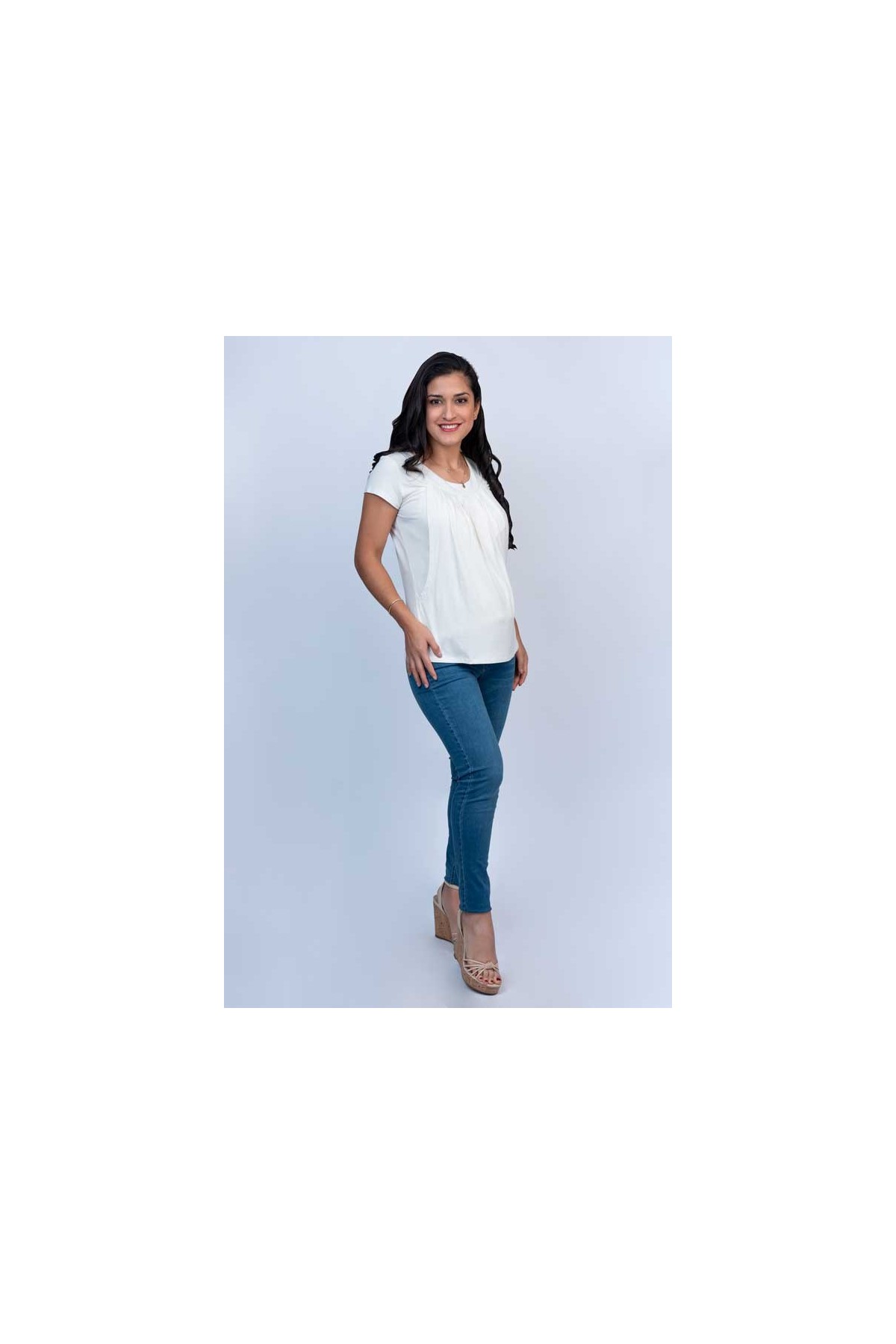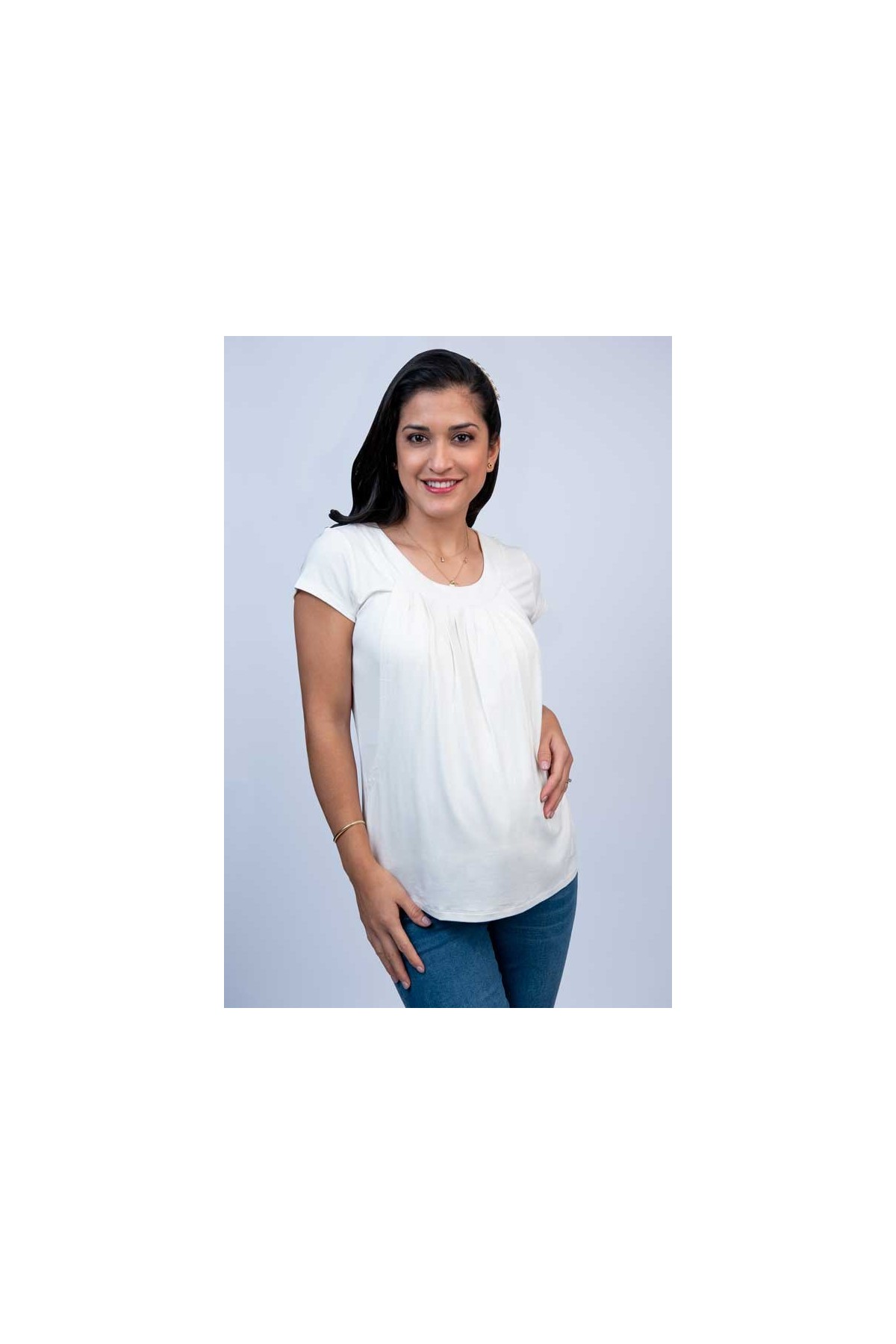 Bello top de lactancia color melange, manga corta, veraniego de doble función, diseñado para el periodo de embarazo y para la lactancia. De escote favorecedor y cómodas aperturas verticales de lactancias ocultas en los pliegues de cada lado que te permitirán una lactancia discreta. Su diseño no marca vientre ni caderas y es ideal para el post parto.