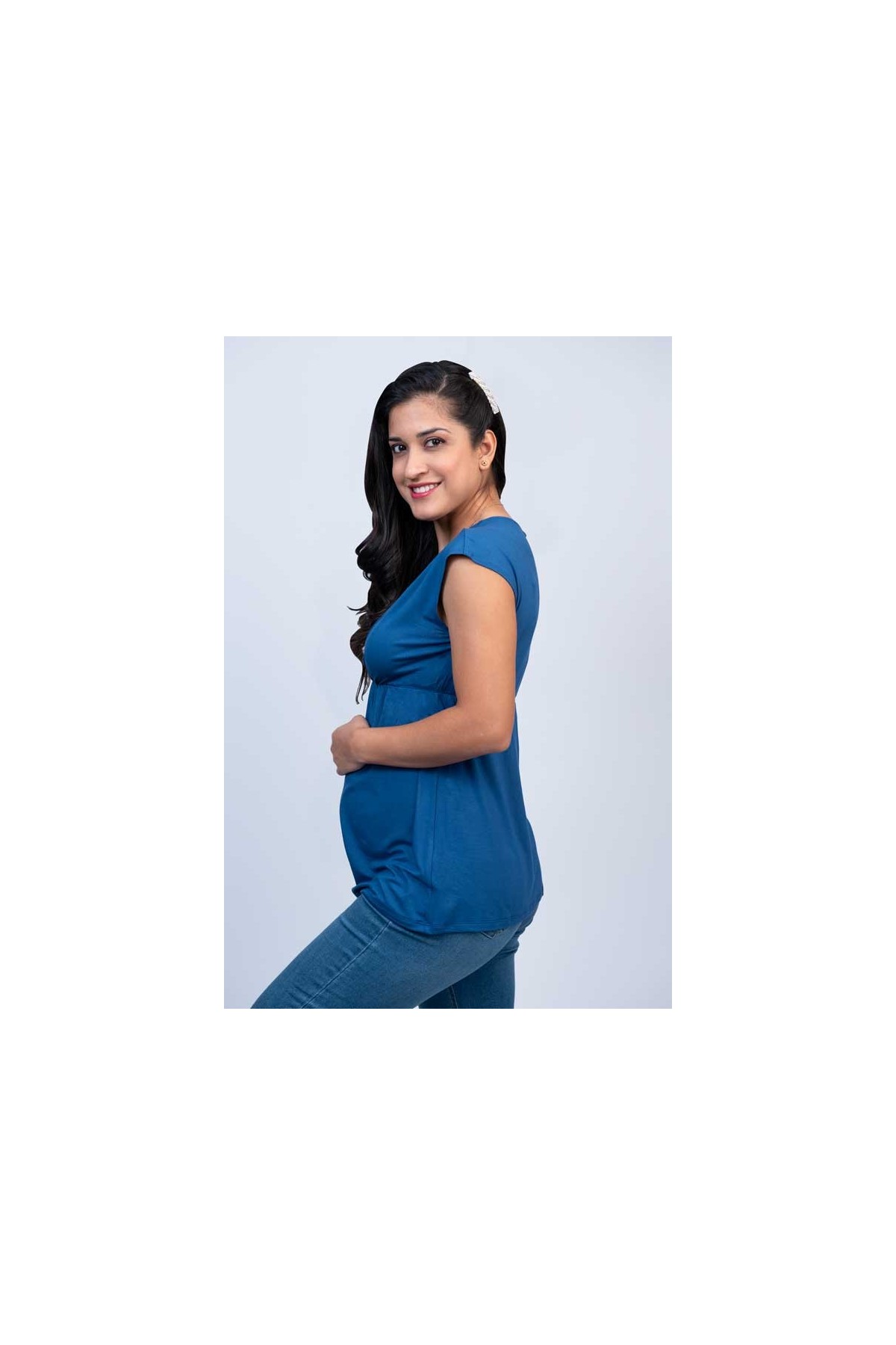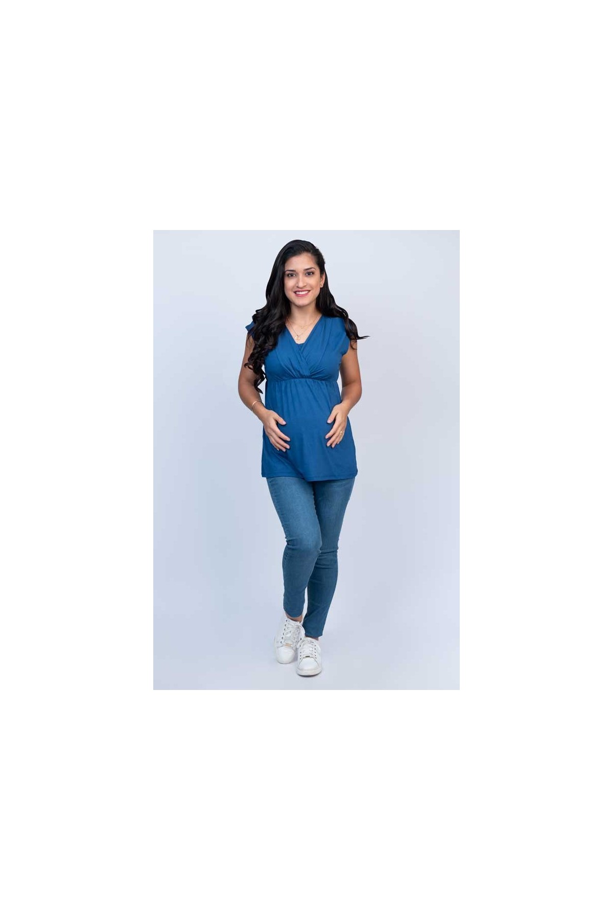 Moderno y delicado polo maternal y lactancia manga corta color Azul, manga corta, fácil y discreta apertura para la lactancia. Lo podrás usar durante tu embarazo por su cómodo diseño y la elasticidad de su tela. Una prenda que no debe faltar en tu closet. Precioso para usar en la oficina.