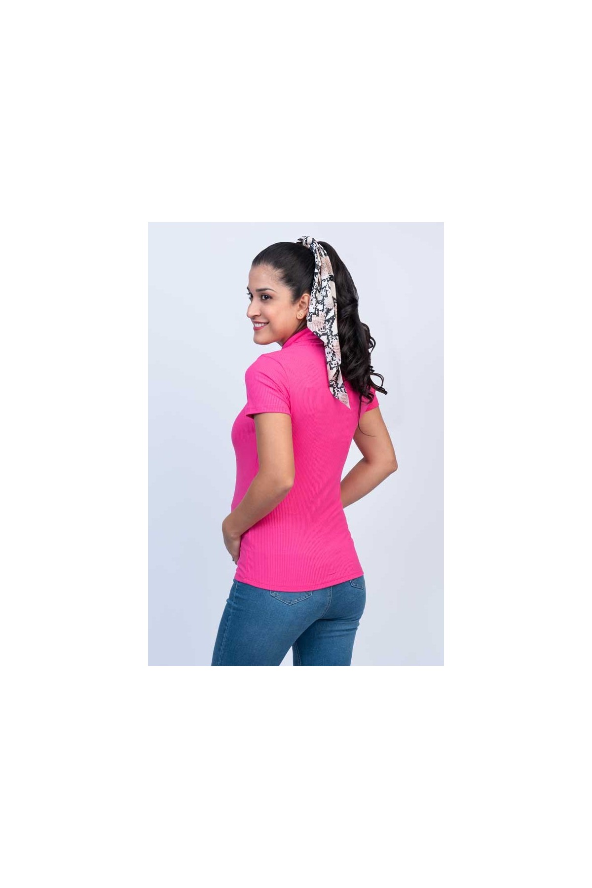 Aporta un toque vibrante a tu vestuario con el Polo Kenia en color fucsia, diseñado con manga corta y cuello camisero. Sus botones al frente facilitan la lactancia, mientras que el algodón rib licrado se adapta perfectamente a tu pancita, brindando comodidad y estilo en cada etapa de la maternidad.