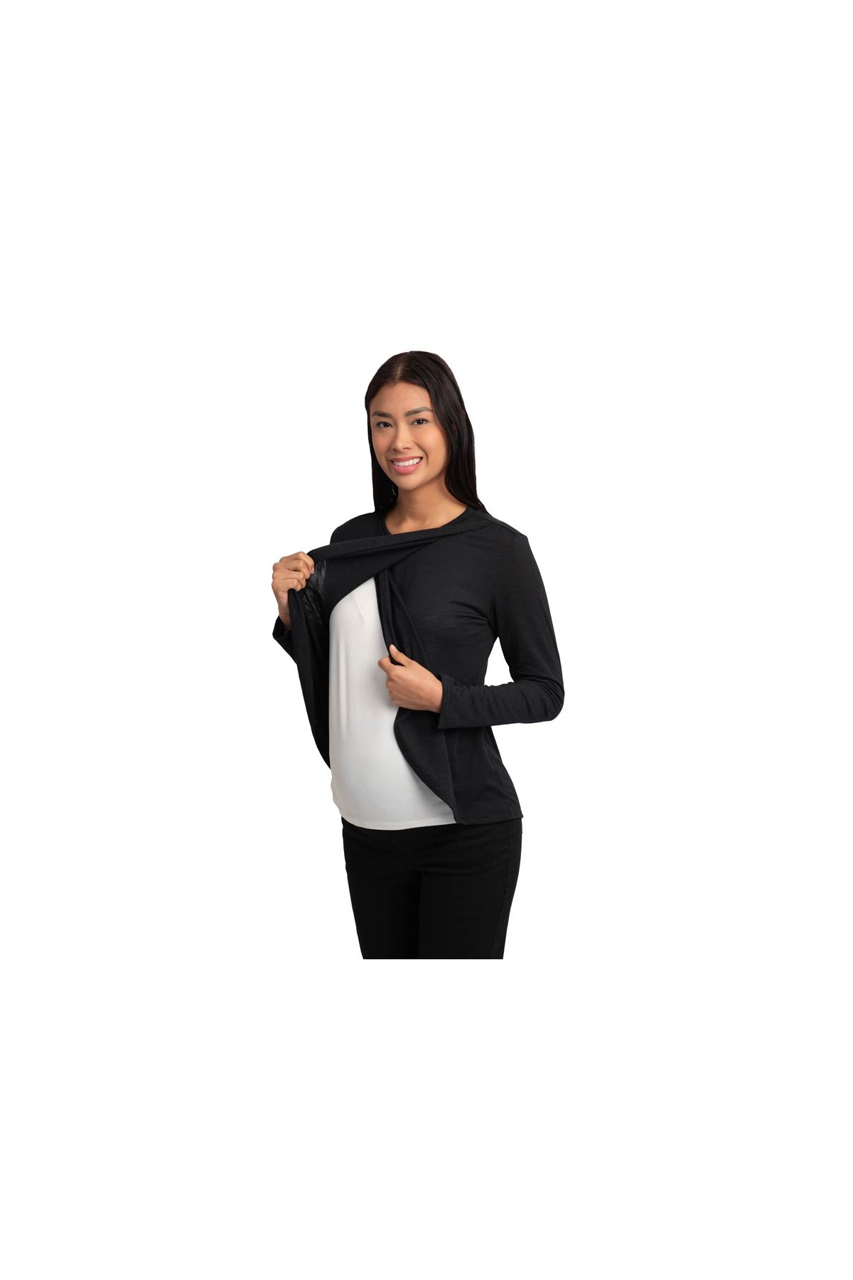 El Polo de Lactancia Manga Larga Bella en color negro con ivory es ideal para acompañarte en esta etapa especial con comodidad y estilo. Su diseño clásico y versátil incluye una práctica abertura oculta para lactar fácilmente, y su combinación de colores lo convierte en una prenda sofisticada para el día a día.