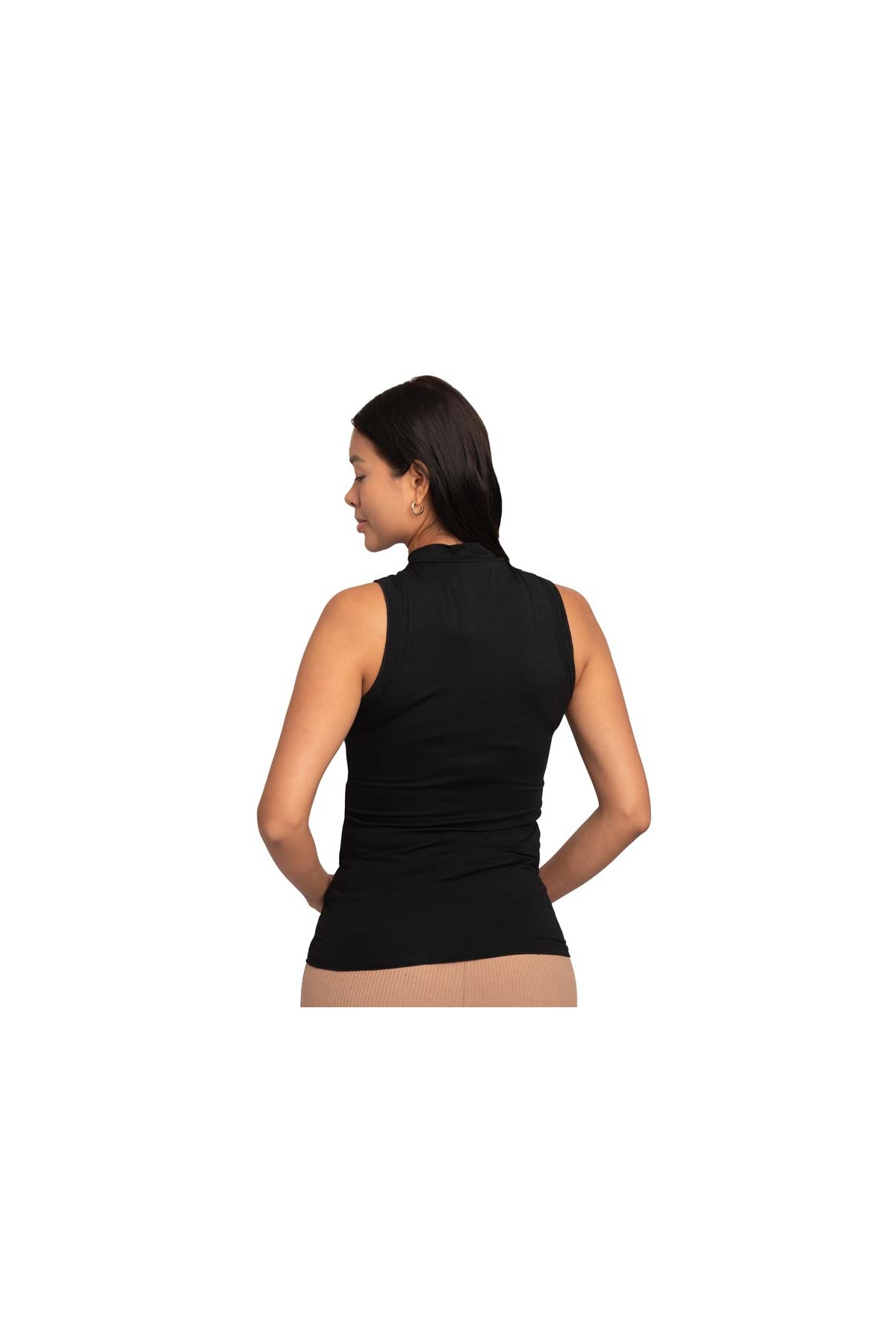Su diseño sin mangas y cuello alto estilizado crea un look sofisticado y funcional. Además, cuenta con doble tela en la parte frontal, lo que brinda mayor estructura y seguridad sin transparencia.