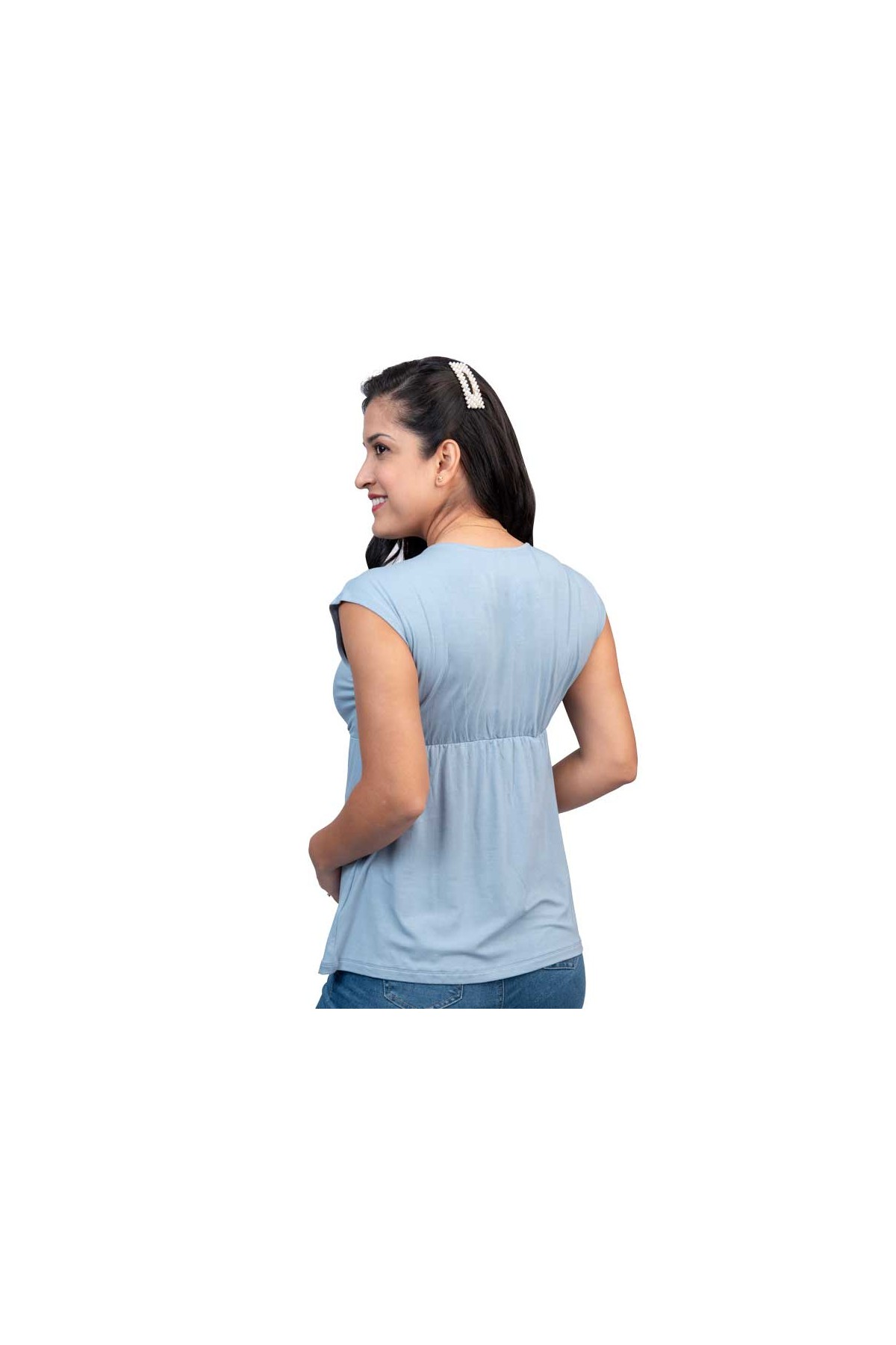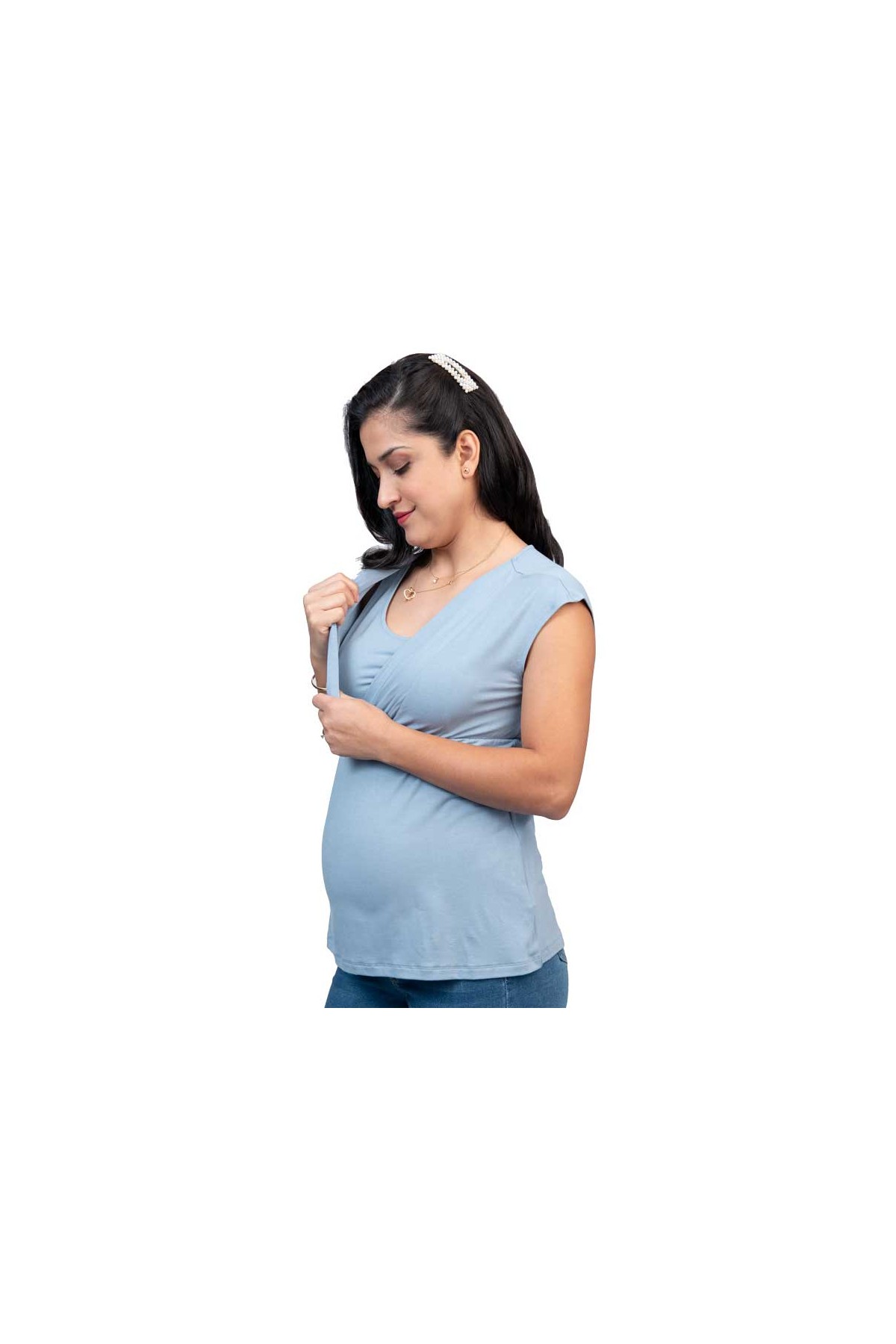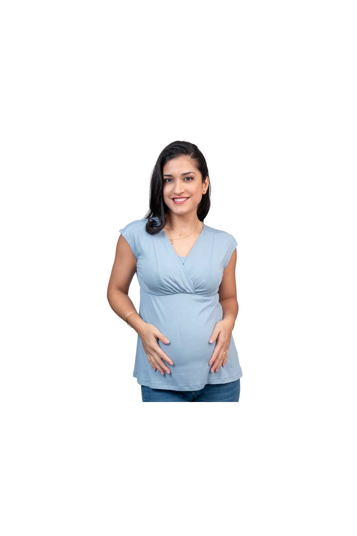 Moderno y delicado polo de maternidad y lactancia color celeste, manga corta, fácil y discreta apertura para la lactancia. Lo podrás usar durante tu embarazo por su cómodo diseño y la elasticidad de su tela. Una prenda que no debe faltar en tu closet. Precioso para usar en la oficina.