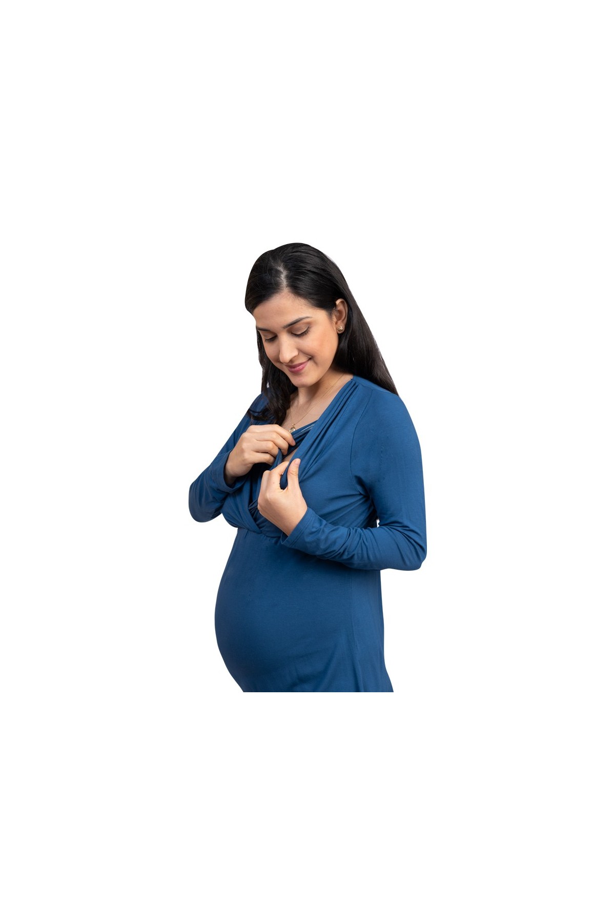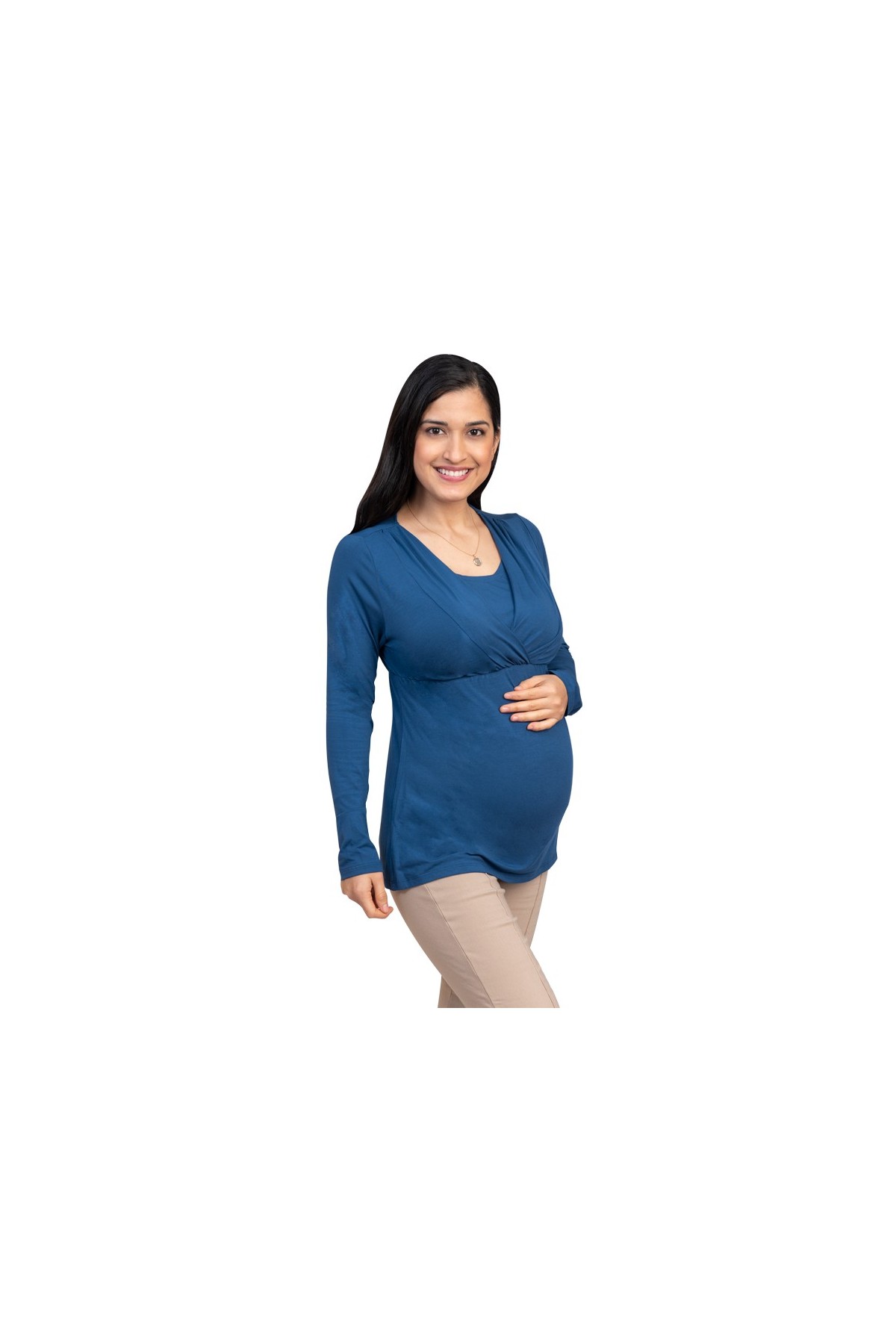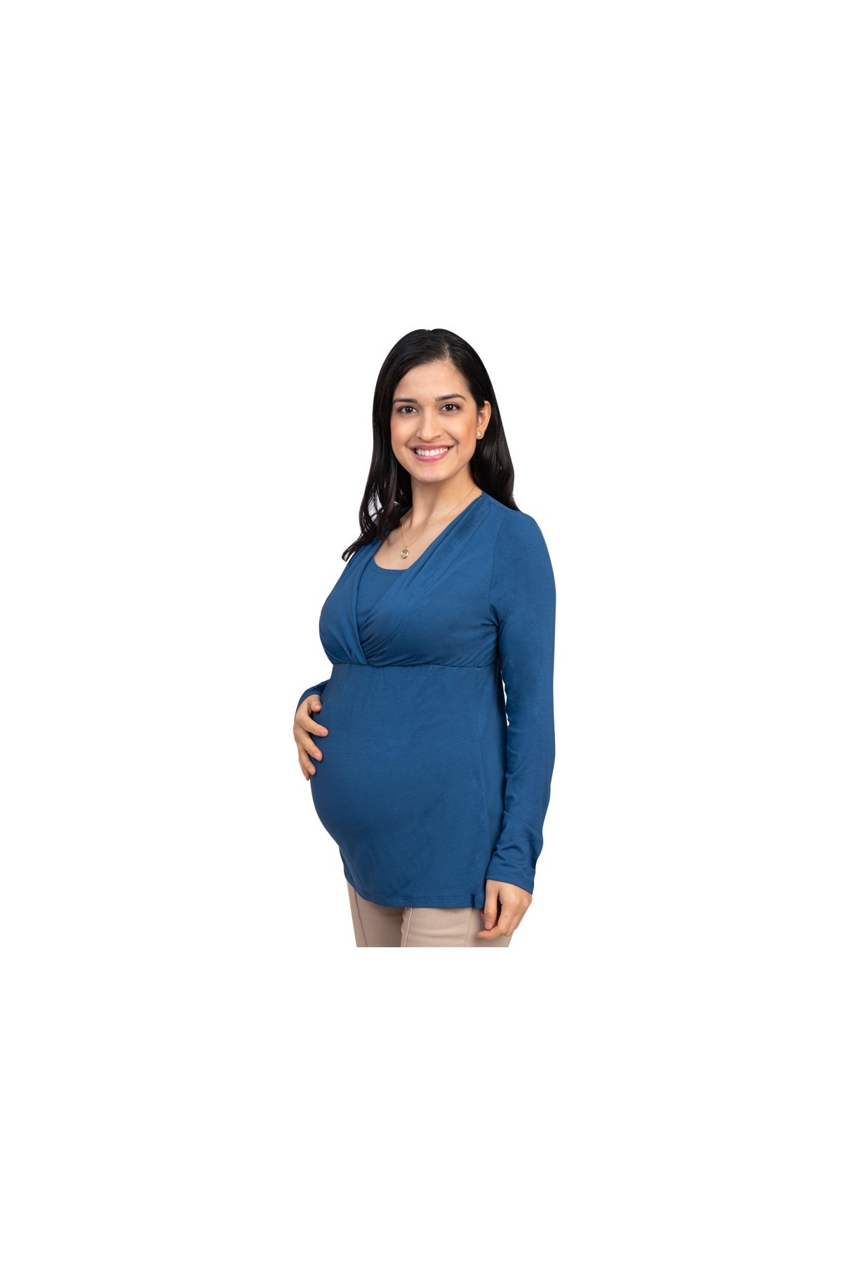 Disfruta de la combinación perfecta entre comodidad y estilo con el polo de maternidad y lactancia Sophie en tono azul Karen. Su diseño con manga larga y apertura lateral discreta permite una lactancia práctica sin sacrificar elegancia. Ideal para usar durante el embarazo gracias a su tejido suave, elástico y prelavado, que se adapta al crecimiento de tu pancita.