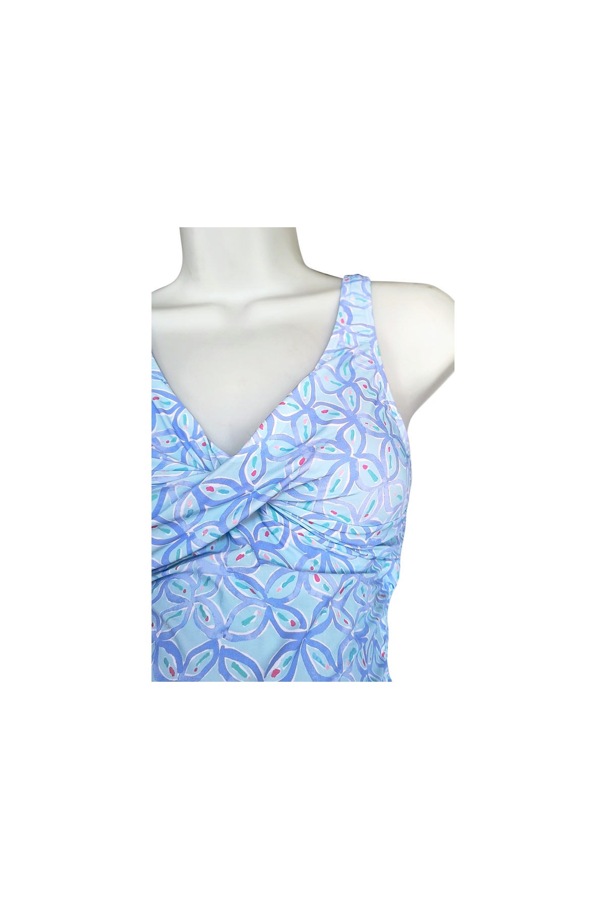 Hermoso set de bikini, con escote en V, en estampado de flores acuareables fucsia, se adapta al crecimiento de la pancita, cuenta con tirantes para regular a los costados.