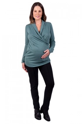 El vestido de maternidad y lactancia Erika en color azul estampado es una prenda sofisticada y versátil, ideal para acompañarte durante y después del embarazo.