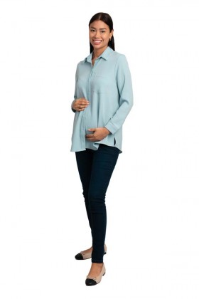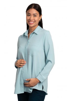 Diseñada para acompañarte con estilo durante el embarazo y la lactancia, la blusa Moni Denim de manga larga es una prenda versátil, moderna y funcional.