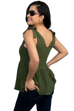 Top sin mangas con lazos en hombros para regular el escote y pinzas para mejor realce. También la parte superior esta hecha en dos capas para evitar transparencia. Corte de la parte...