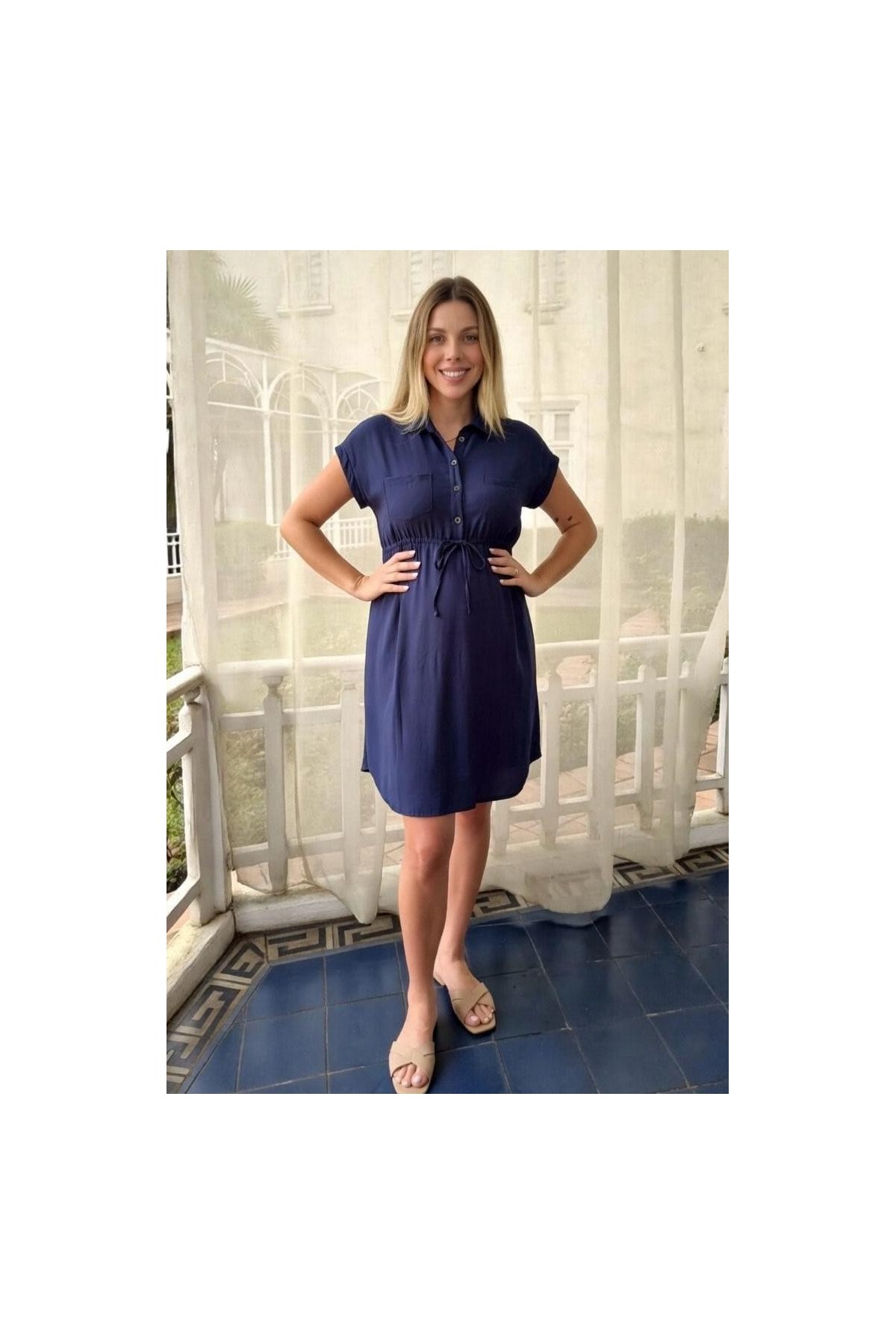 Vestido Camisero de Maternidad Moni Azul Marino