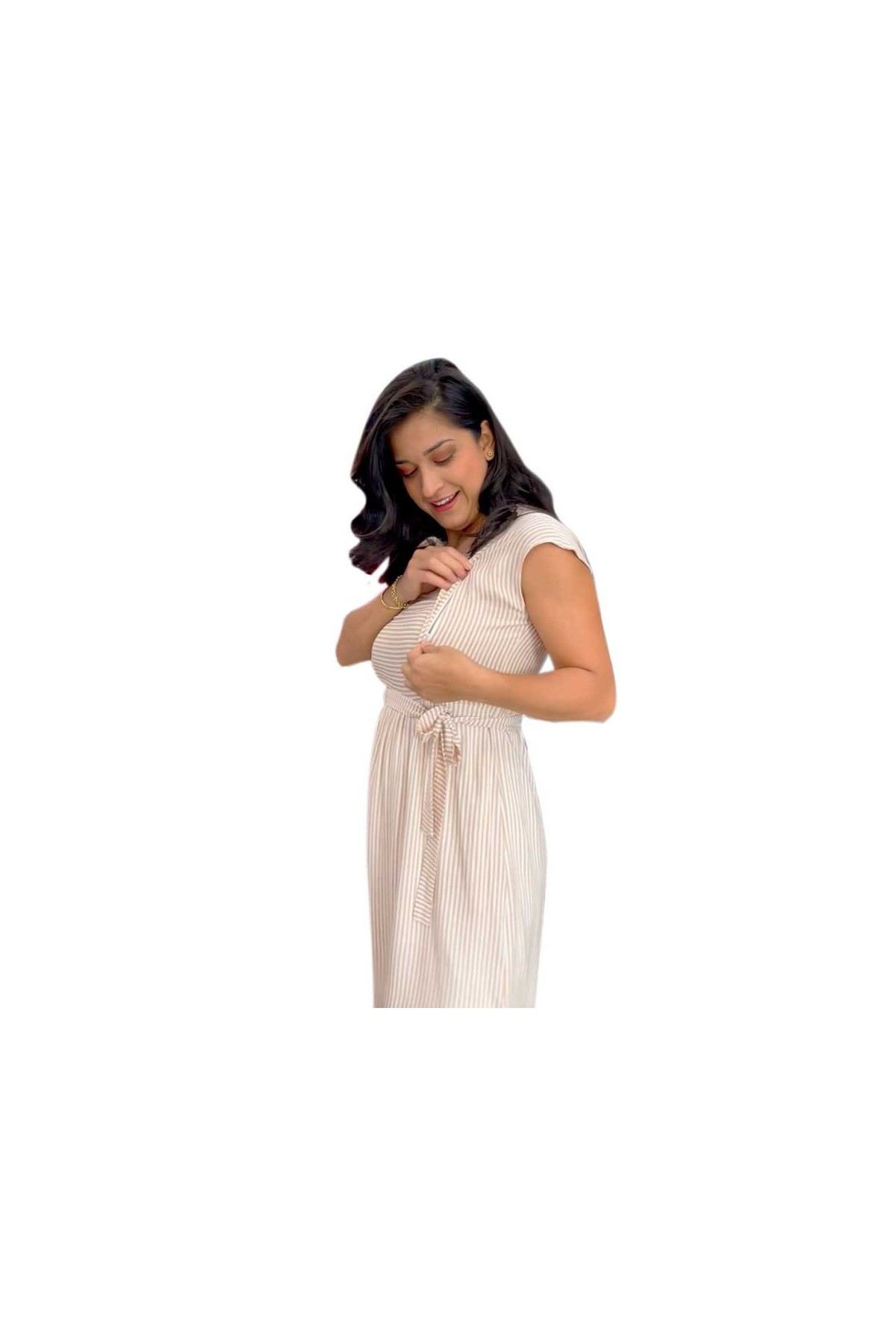 Vestido de Maternidad y Lactancia Estella Rayas Beige